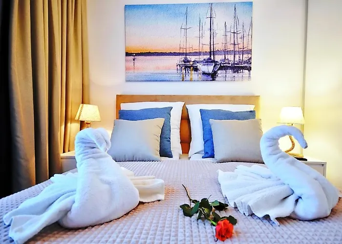 Con vista sul fiume, Nadmorskie Tarasy 503 Kołobrzeg, di 38 m^2, è situato nel quartiere Dzielnica Uzdrowiskowa, a circa 500 metri da Central Beach. Dotato di un bagno turco, una piscina all'aperto e una piscina coperta, quest'appartamento si trova di fronte alla Mice Town.